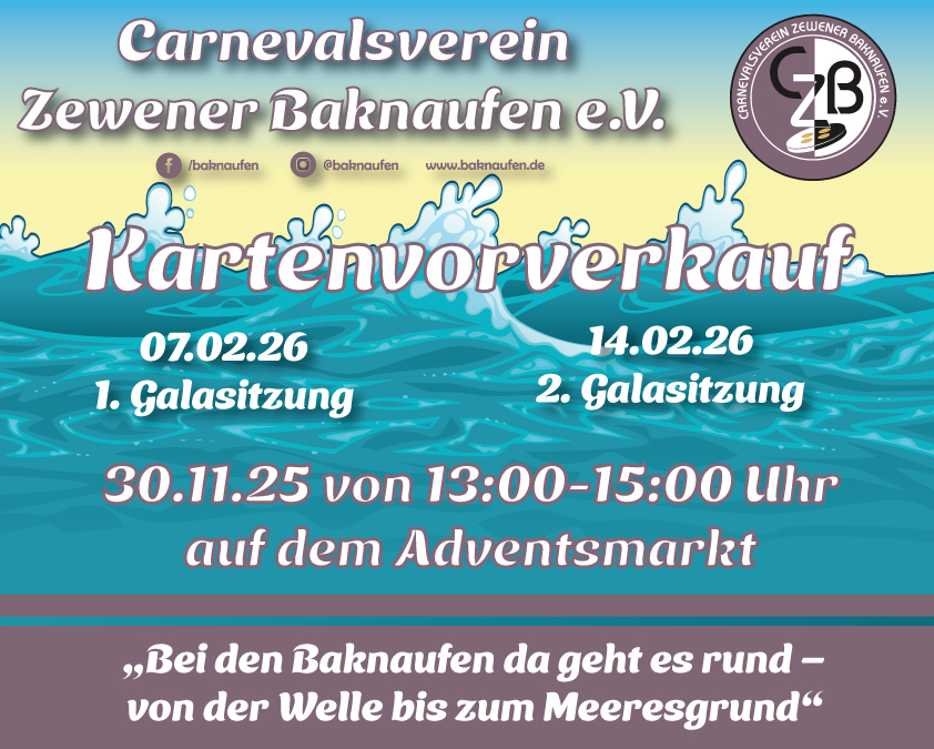 Am 30.11.2025 findet zusätzlich auf dem Adventsmarkt von 13-15 Uhr unser diesjähriger Kartenvorverkauf statt für unsere Galasitzungen der kommenden Session. Sichert Euch schon jetzt Eure Tickets – das ideale Weihnachtsgeschenk!