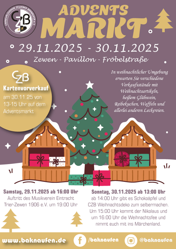 Auch in diesem Jahr freuen wir uns Euch unseren traditionellen Adventsmarkt am Pavillon in Zewen in der Fröbelstraße anbieten zu können.